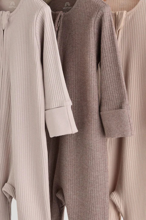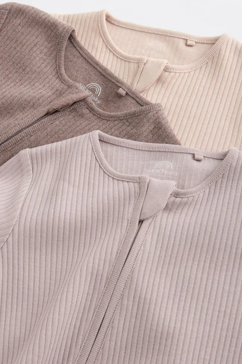 Chocolate Brown 3 Pack Two Way Zip Baby Sleepsuit